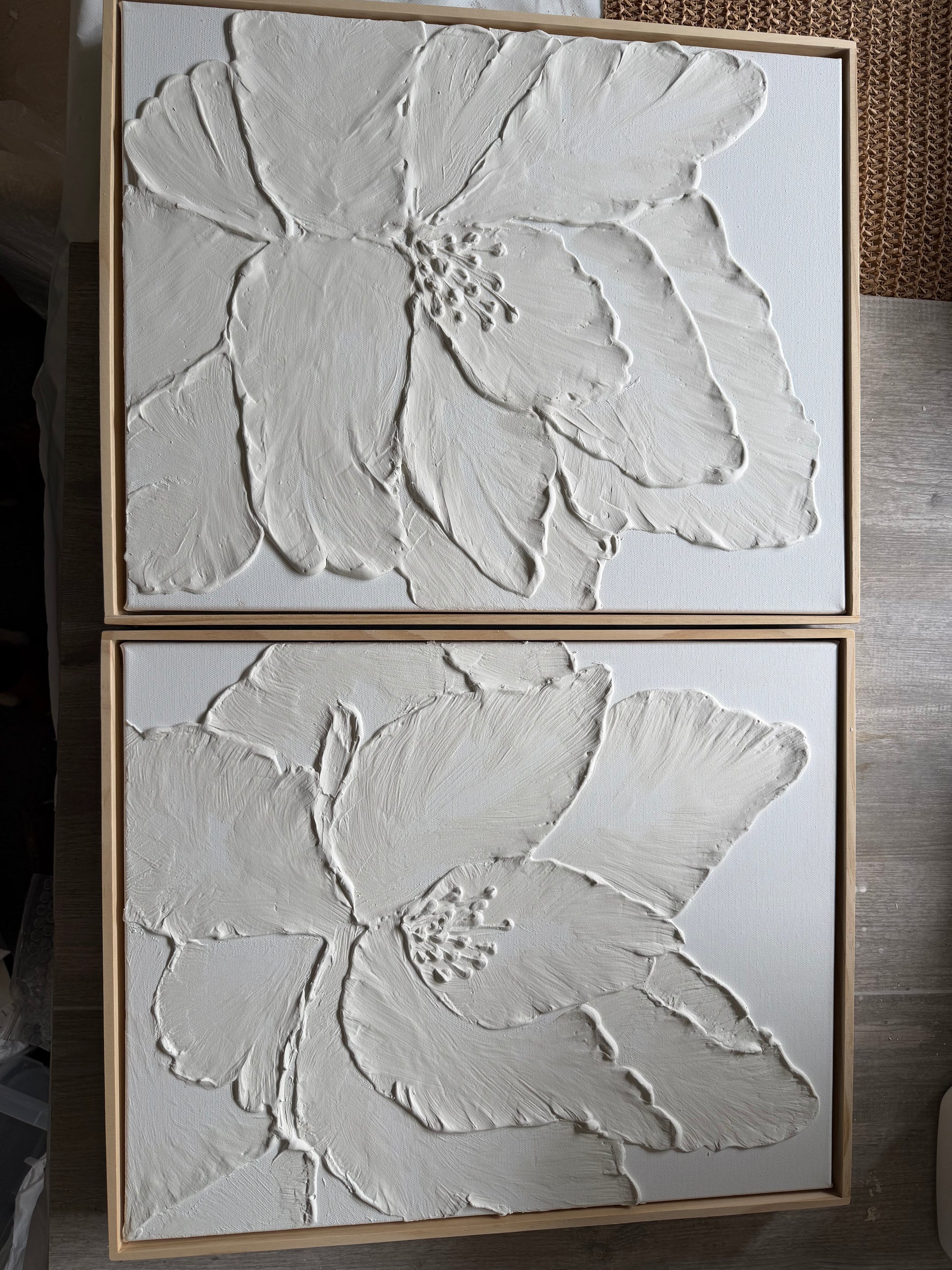 Set of two 42x52 framed canvas flower design.